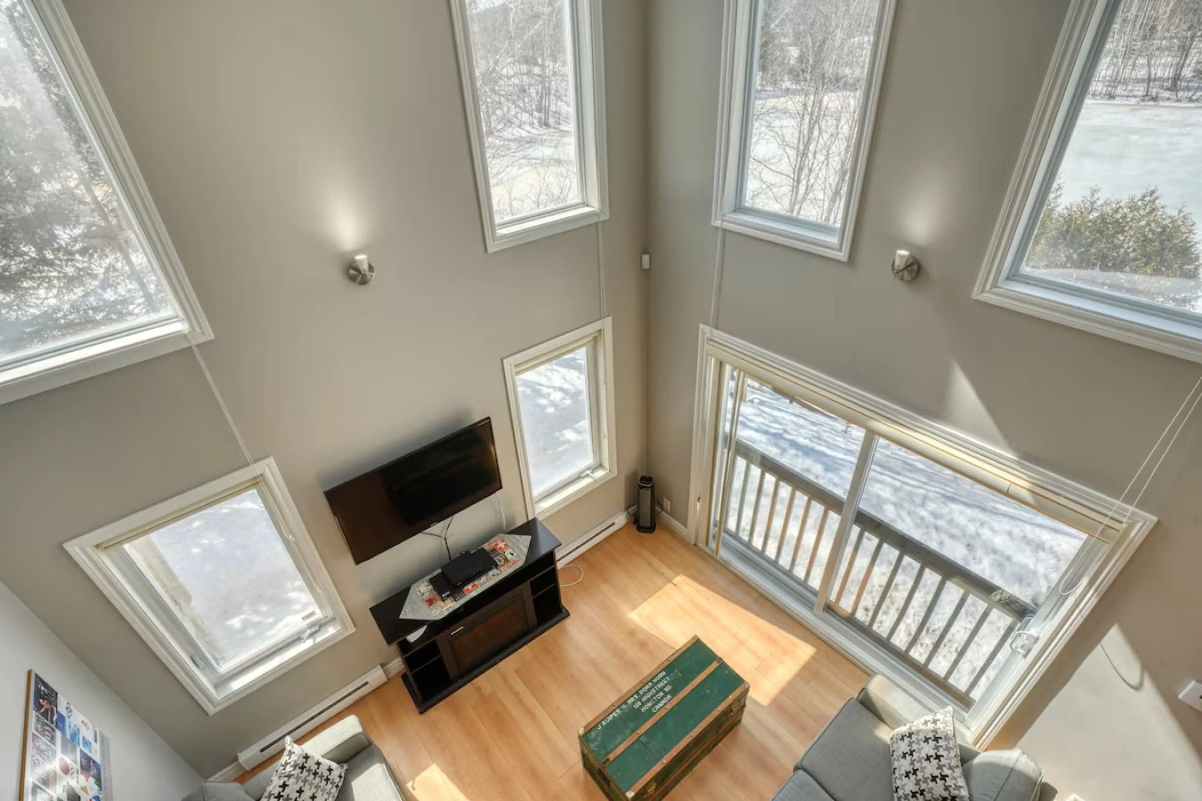 Escape to this spacious 3-bedroom, 2-bath chalet on Lac Supérieur. With 3 queen beds and basement bunk beds, it hosts up to 6 guests. Enjoy a private hot tub, lake access with canoe and paddleboat, and evenings by the fire pit. Inside, relax with Wi-Fi, Chromecast TV, pool and foosball tables, washe...
