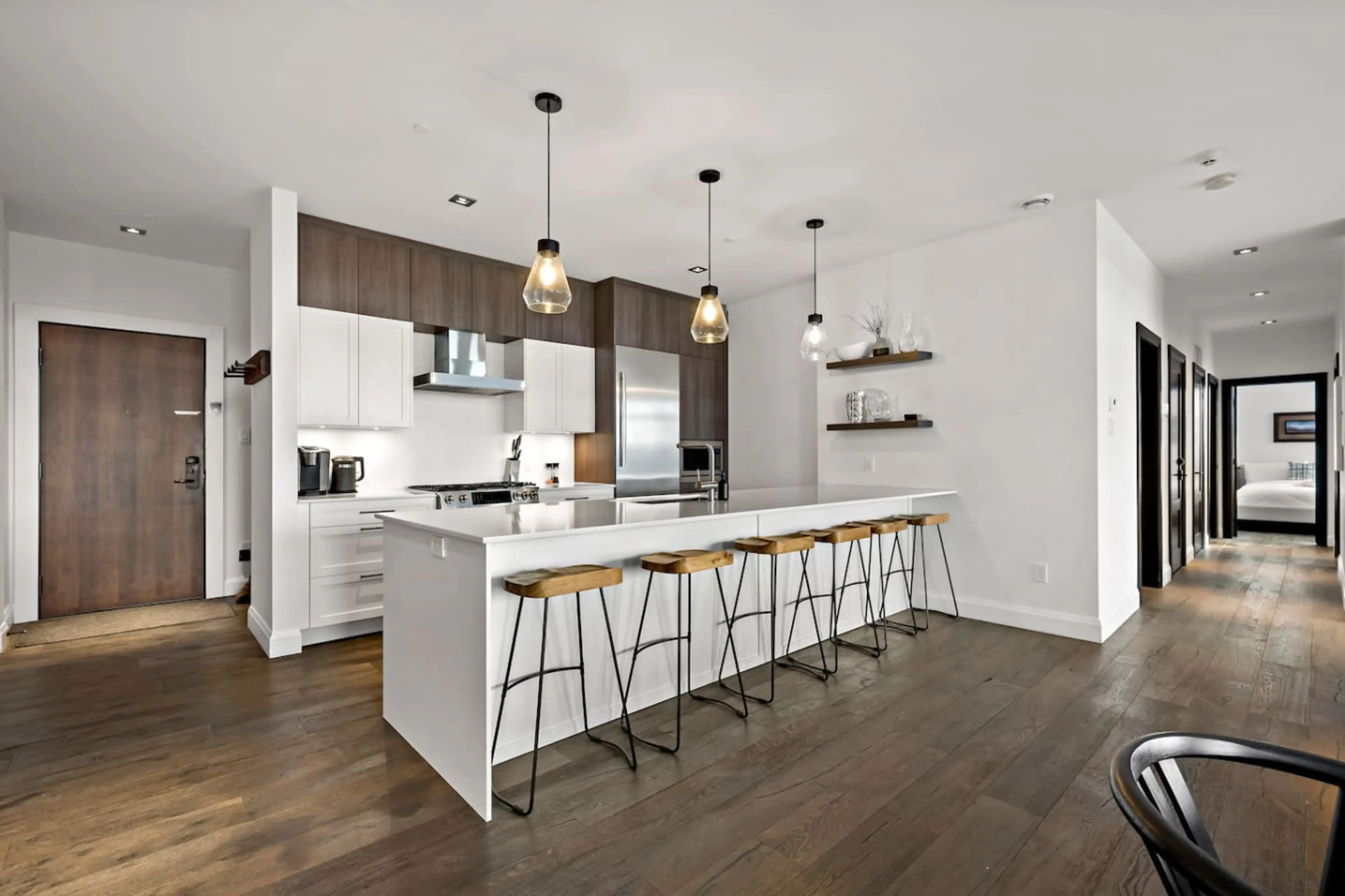 Horizon 204 is a premium 3-bedroom ski-in/ski-out condo steps from the village, offering panoramic mountain views through floor-to-ceiling windows. Enjoy a refined alpine stay with a gas fireplace, heated floors, full kitchen, private balcony with BBQ, and high-end finishes throughout. Guests have a...