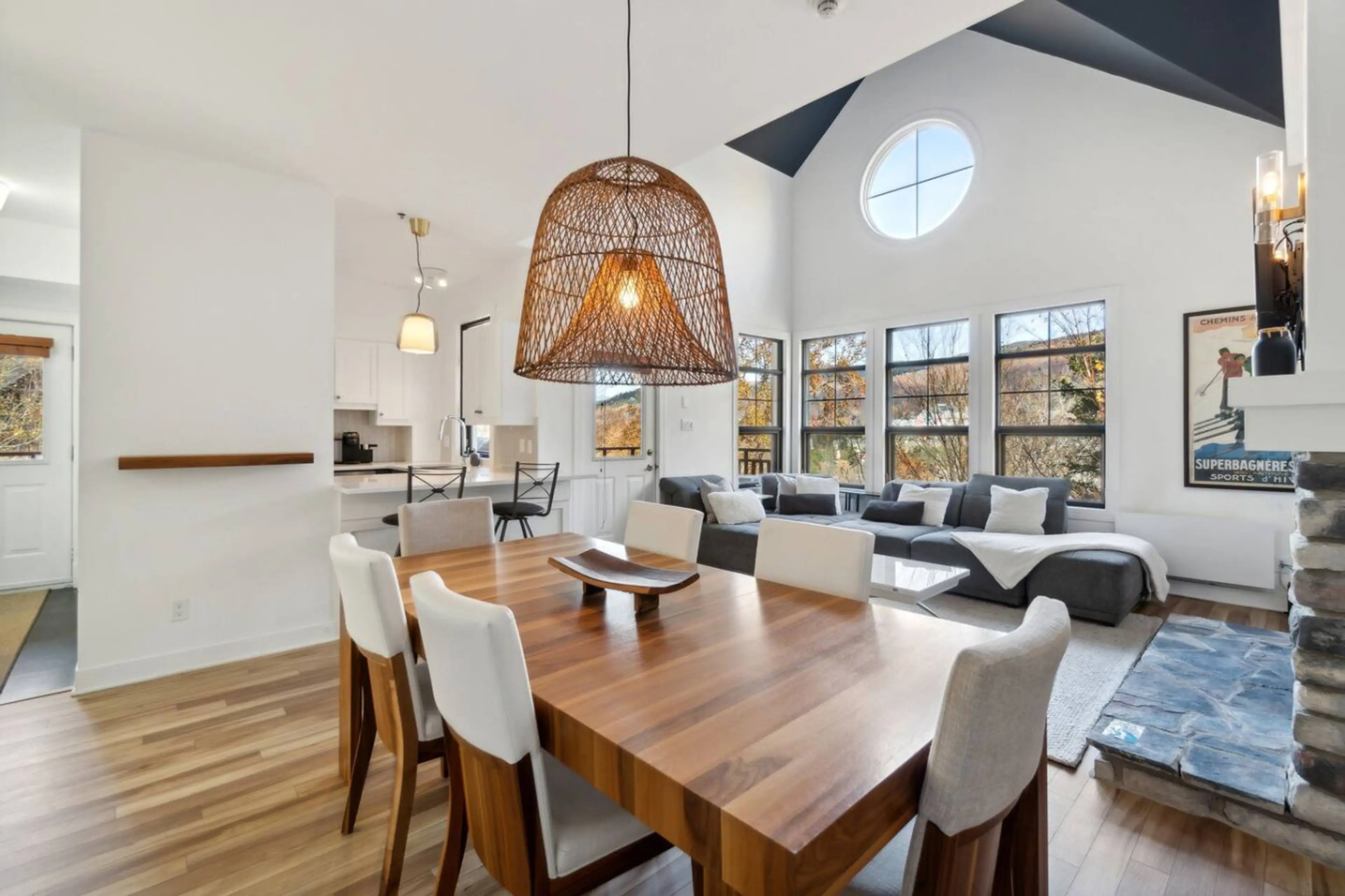Stay in style at Les Eaux Tremblant with this newly renovated 2-bedroom condo featuring cathedral ceilings, a modern design and a private in-unit sauna! Enjoy breathtaking views of Tremblant village and the mountain right from your window. Perfect for a relaxing getaway, this spacious retreat combin...