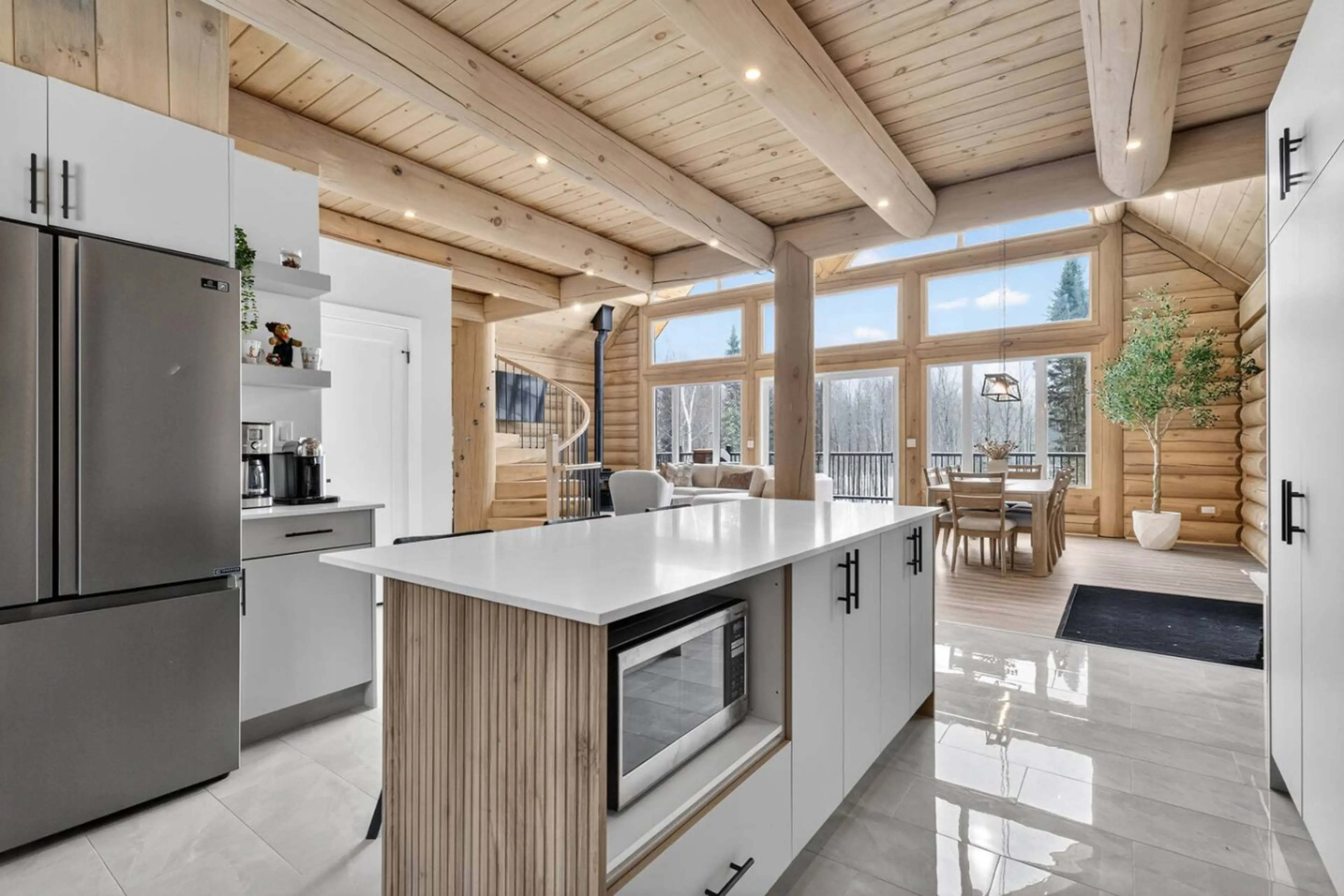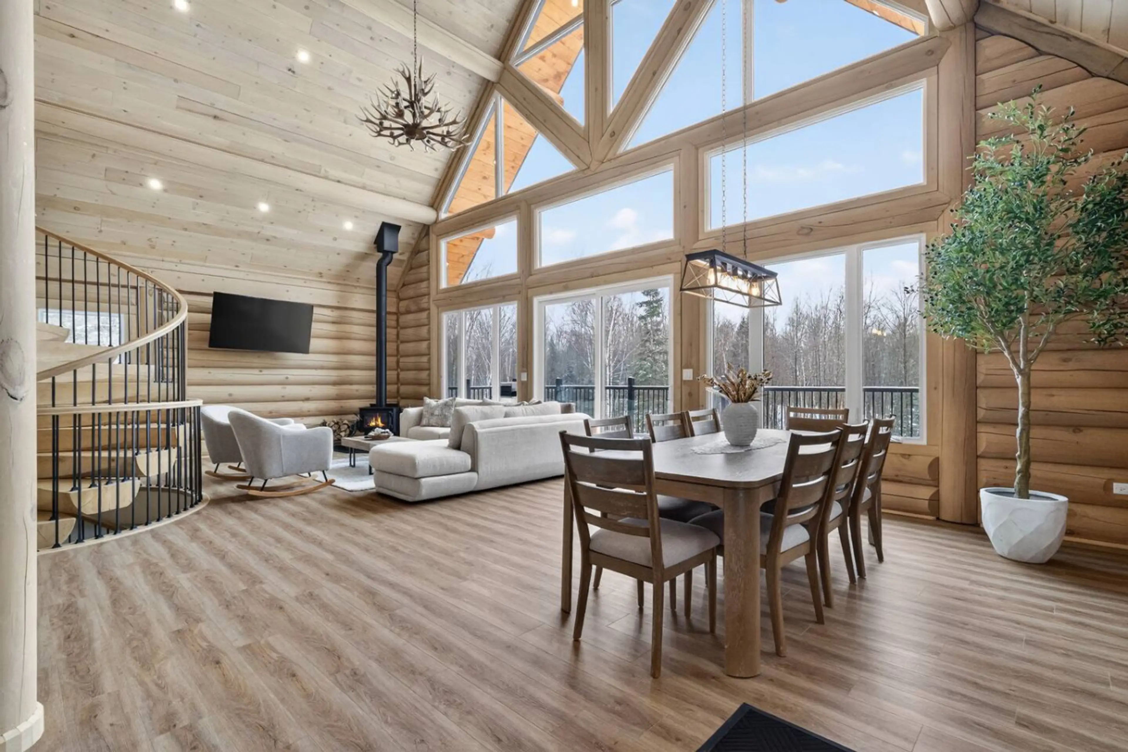 THE SPACE Welcome to Chalet Bellevue, a custom-built log chalet that blends rustic charm with modern comfort. Handcrafted wood interiors, a wood-burning fireplace, and cozy living spaces create an unforgettable atmosphere. Nestled in nature, the chalet offers peace and privacy while providing all t...